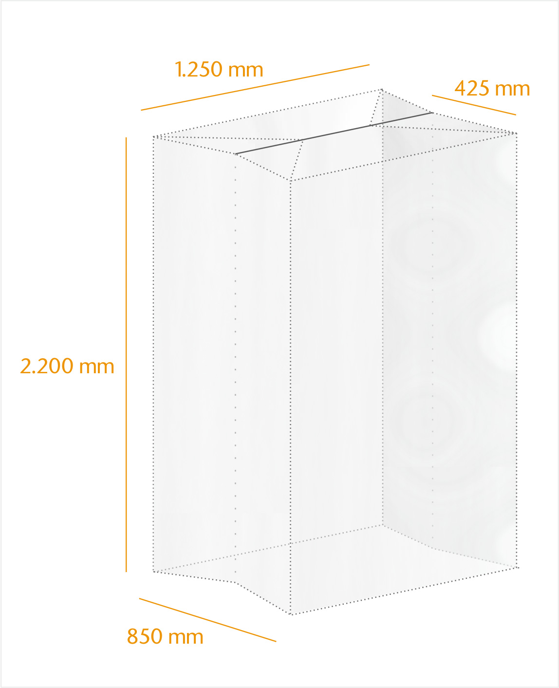 Unsere großvolumigen LDPE Foliensäcke mit praktischen Seitenfalten und in verschiedenen Ausfertigungen/Stärken eignen sich zum Verpacken, Entsorgen und Transportieren großer und sperriger Gegenstände bzw. Verpackungsmaterial. Zieht man die Seitenfalten auseinander, wird erst deutlich, wieviel zusätzliches Verpackungsvolumen der Sack bietet. Unsere 2.500 Liter Großvolumen-Säcke sind absolut vielseitig einsetzbar: zur Styroporsammlung und -aufbewahrung, als staubdichte Schutzhaube für sperrige Gegenstände oder als praktische Auskleidung für Behälter und Boxen.