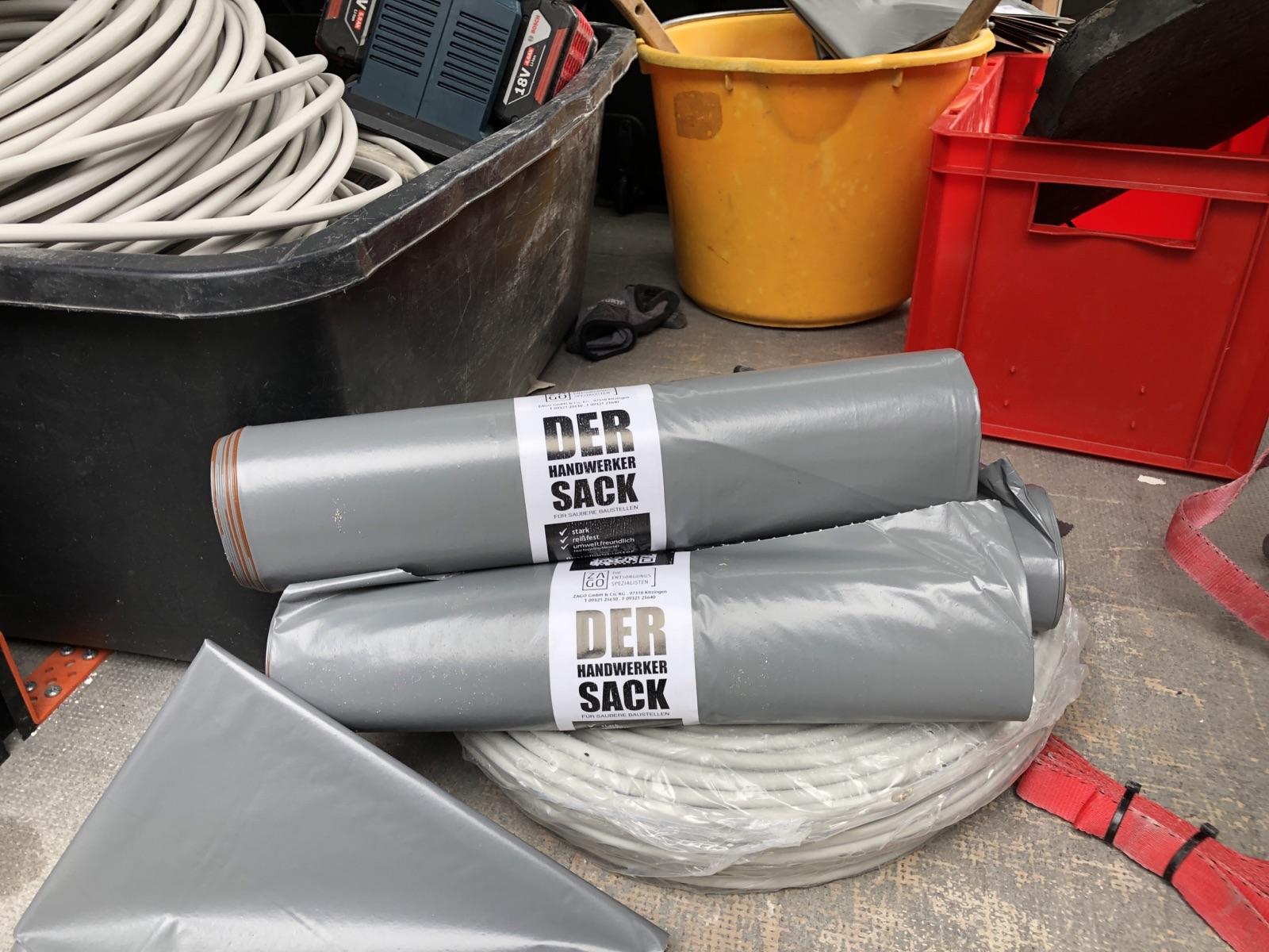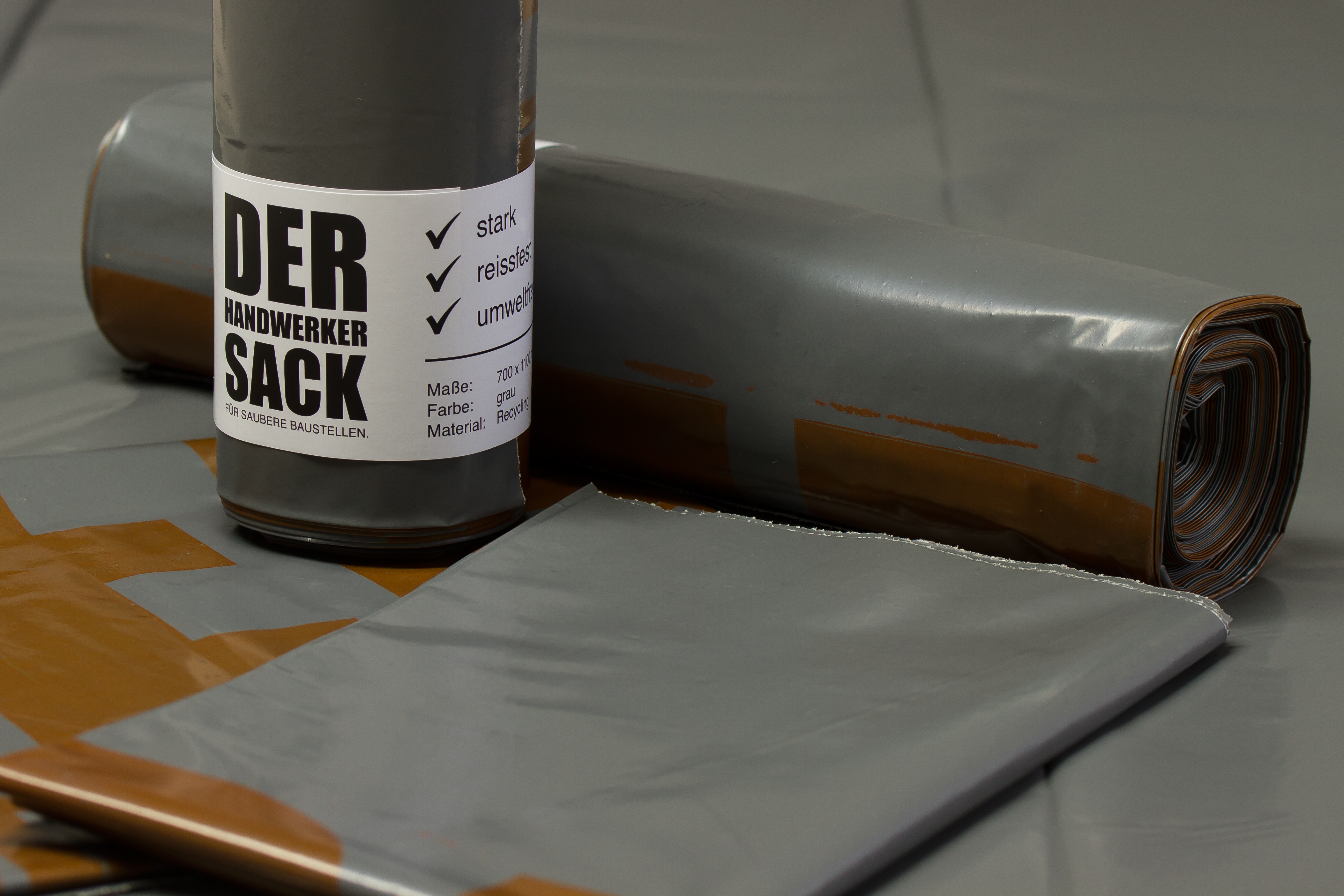 Mit unseren 120 Liter Handwerkersäcken in 2 verschiedenen Ausführungen sind Baustellenabfälle ruckzuck beseitigt. Unsere Müllsäcke mit Materialstärke 65µ und 130µ bestehen aus Recycling-Material, das einen extra hohen Stretch-Anteil aufweist. So können auch mal spitze oder schwere Gegenstände entsorgt werden, ohne dass der Sack gleich einreißt. Unsere Handwerkersäcke sind für Dachdecker, Gas- und Wasserinstallateure, Elektriker und alle Handwerker und Dienstleister, die nach getaner Arbeit eine saubere Baustelle hinterlassen wollen. Mit seinen 120 Litern Fassungsvermögen bietet der Sack viel Raum für Abfälle. Gleichzeitig kann er mit seiner handlichen Größe von 700 x 1100 mm auch in engen Treppenhäusern und auf Gerüsten problemlos herumgereicht oder platziert werden. Die stabilen Abfallsäcke für Bauschutt, Dachpappen, Kabel- und Teppichreste sind in 2 Ausführungen erhältlich: