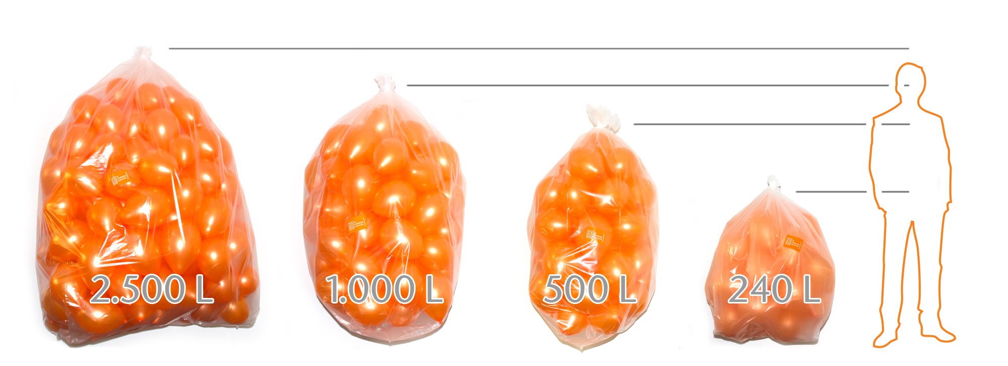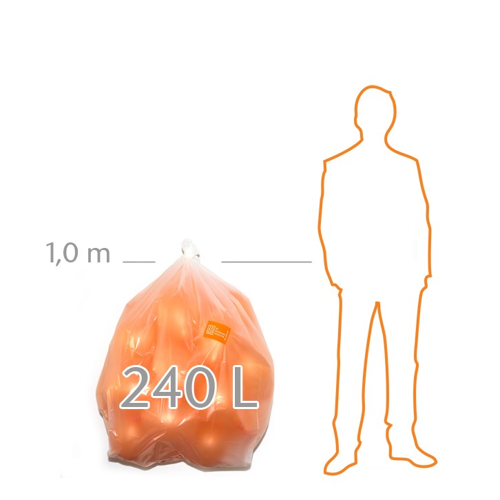 Der 240 L Sack passt perfekt in alle gängigen Mülltonnengefäße und wird häufig zur Sammlung aller Müllarten verwendet. Im Einsatz bei Straßenmeistereien oder im Gewerbebereich.