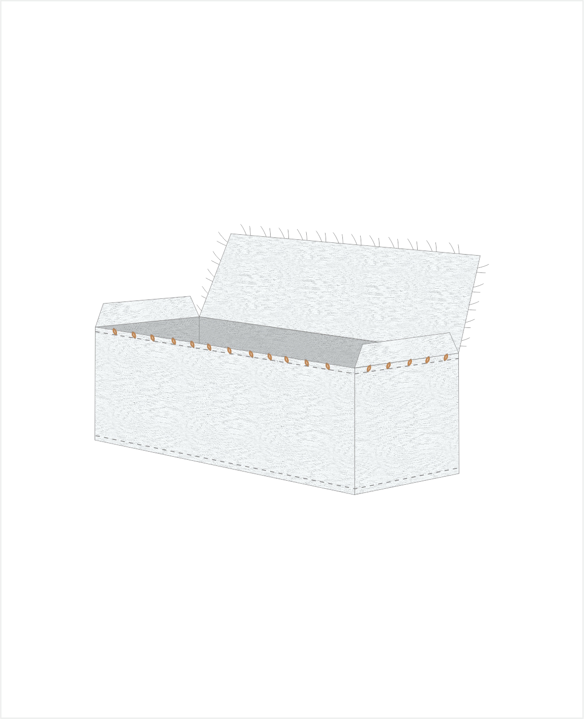 Der ContainerBag 34 m³ 620 x 240 x 225 cm ist unbedruckt, beschichtet, hat eine 3-seitige Schürze und eine Deckel.