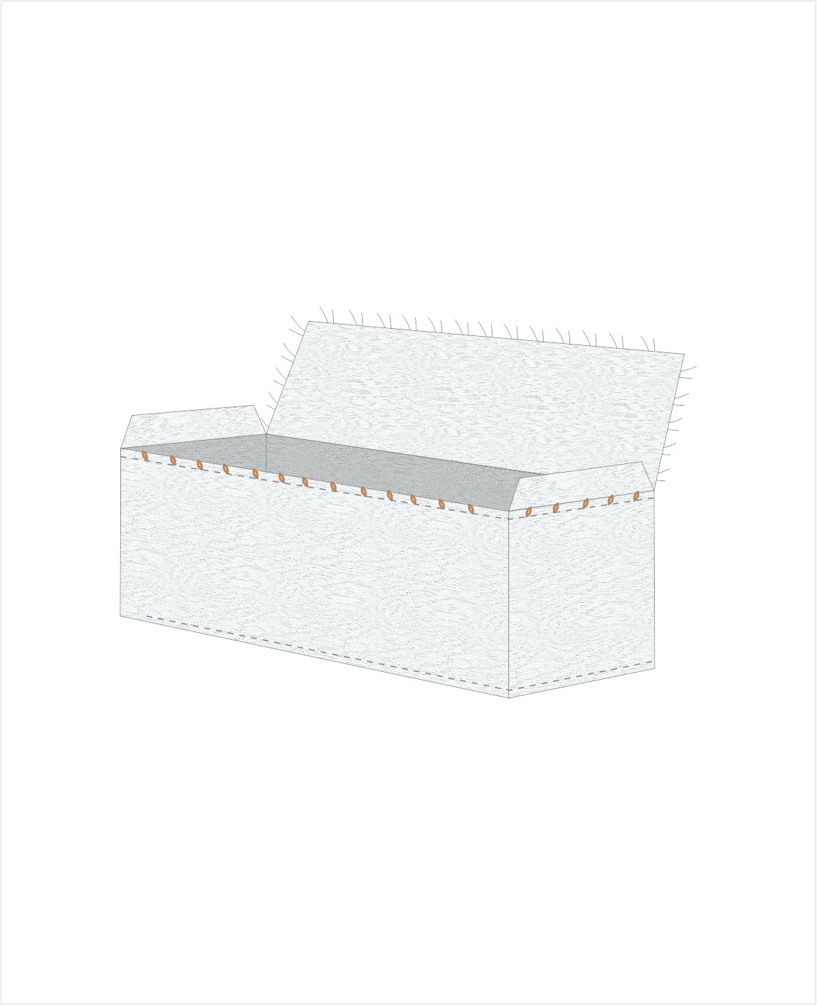 Der ContainerBag 37 m³ 620 x 240 x 240 cm ist unbedruckt, beschichtet, hat eine 3-seitige Schürze und eine Deckel.