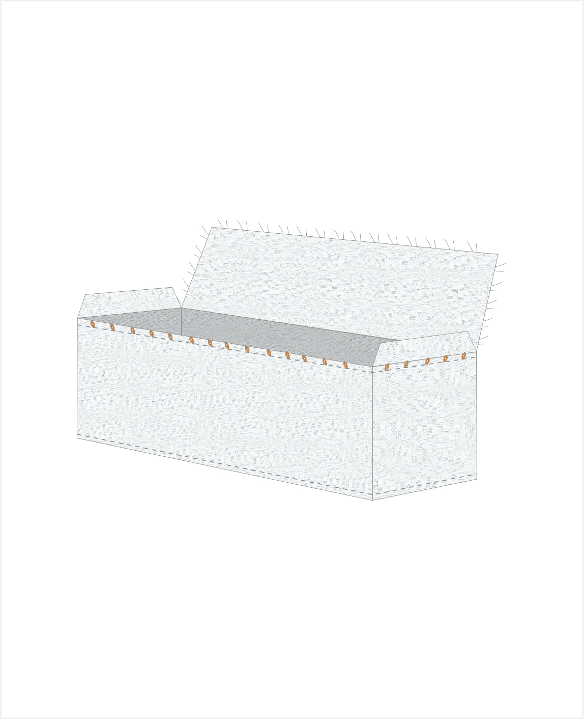 Der ContainerBag 40 m³ 700 x 240 x 240 cm ist unbedruckt, beschichtet, hat eine 3-seitige Schürze und eine Deckel.